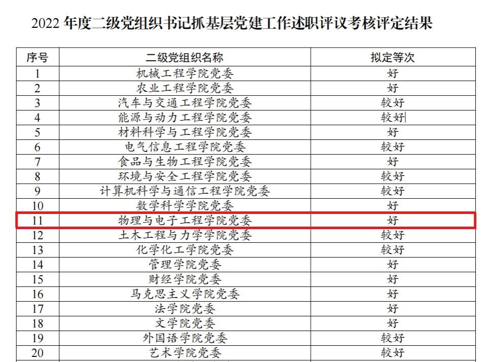 近日,校党委公布了2022年度二级党组织书记抓基层党建工作述职评议考核结果,我院党委被评定为“好”等次。