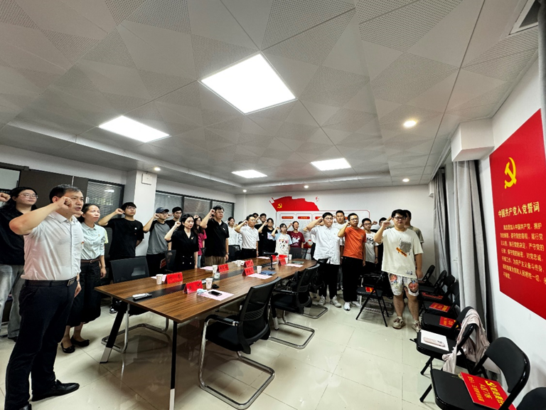 全体党员在学院党委书记潘金彪的带领下,高举右拳郑重宣誓,重温入党誓词。一句句铮铮誓言都代表着在场党员对党组织的庄严承诺。