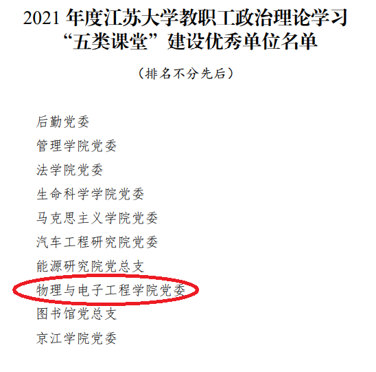 近日,校党委宣传部公布了2021年度成人网址 教职工政治理论学习“五类课堂”建设评比结果,成人网址 党委获评优秀单位。