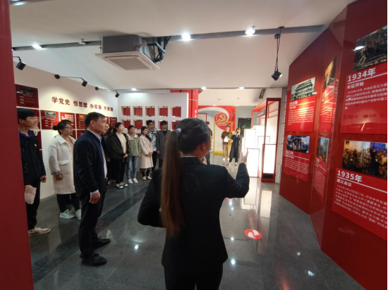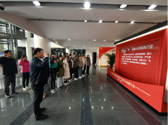 在讲解员带领下,大家依次参观学习了“新时代中国共产党的历史使命”“党史大事记”“成人网址 历史变迁”“党史同心圆”“我们的成就”“习近平总书记金句”等板块内容。参观活动现场,在院党委书记潘金彪带领下,全体党员重温了入党誓词。
