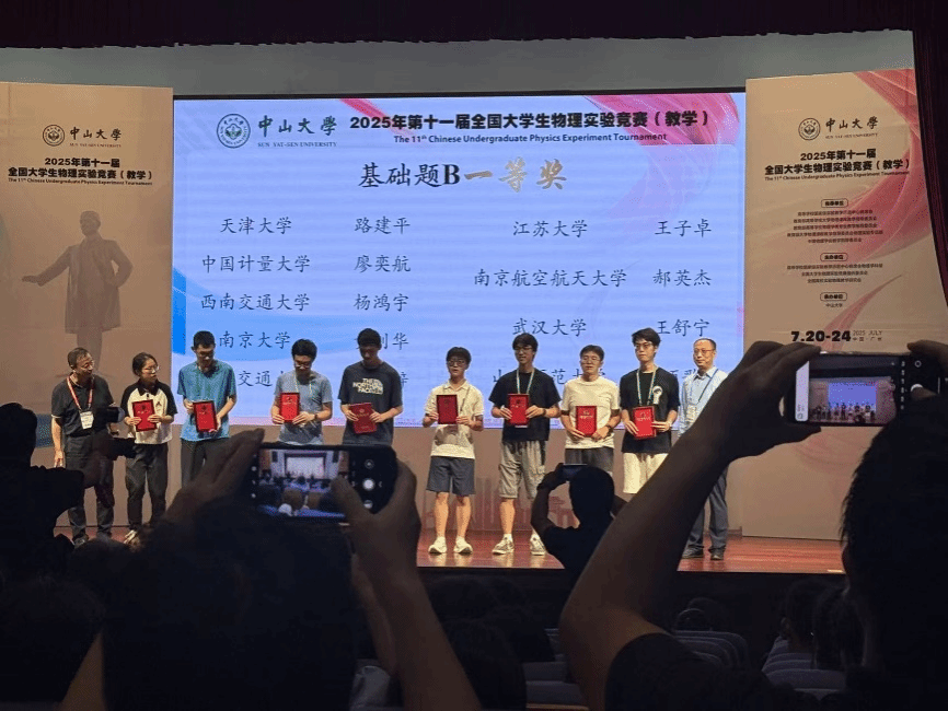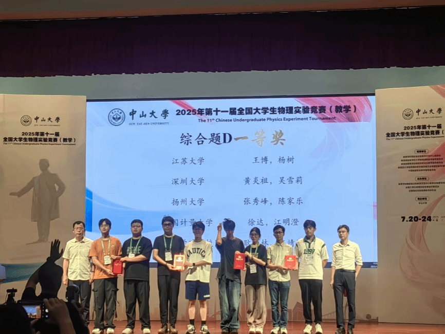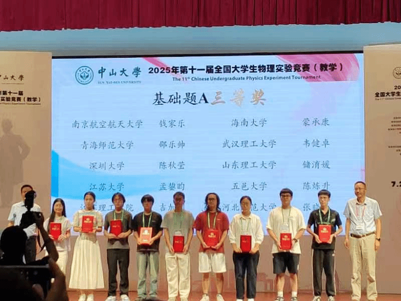 近日,第十一届全国大学生物理实验竞赛(教学)在中山大学举行,来自全国30个省市自治区的122所高校、673名师生参赛。成人网址 代表队凭借扎实的理论基础与出色的实验能力,从众多高校中脱颖而出,荣获两项一等奖、一项三等奖,并获优秀组织奖,充分展现了我校物理实验教学的深厚底蕴与人才培养成效。成人网址 关工委王国余、陶根宁全程参与备赛指导。