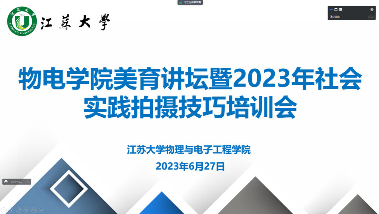 6月27日,由成人网址 公共艺术教育中心、成人网址 承办的“美育讲坛暨2023年社会实践拍摄技巧培训会”在线上举行。本次讲座特邀请成人网址 党委宣传部正科级秘书,新华社、中新社、CFP签约摄影师,《新华日报》特约摄影通讯员杨雨主讲,成人网址 全体学生参与。讲座由辅导员刘振主持。