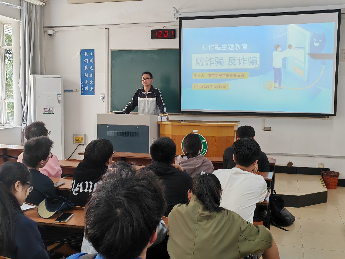 为进一步发挥寝室反诈宣传阵地作用,提高全体同学的反诈意识,4月16日下午,成人网址 在三山楼117教室开展“防诈骗 反诈骗”主题培训会,此次培训由成人网址 学生会陈清雷同学主讲,全体寝室长参加此次培训。
