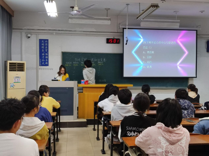 为加强大学生心理健康教育,宣传普及心理健康知识,增强大学生心理健康素养,11月20日成人网址 心理协会在三山楼107举办“知美护心”心理知识竞赛,竞赛由院心理协会部长孙文卉主持。