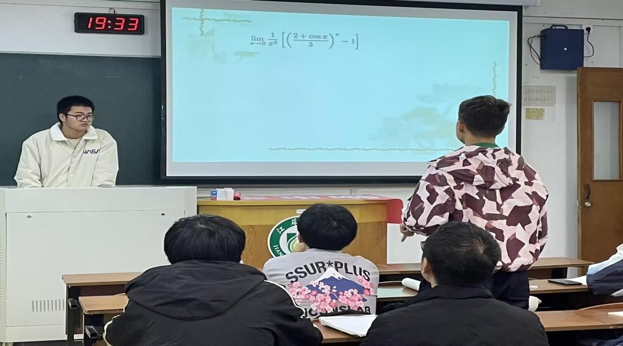 首先,周会治向大一新生介绍高数的学习方法。周会治表示,高数学习应该从大一开始打好基础,要着重抓好极限思想。接着,周会治给大一新生提出了几点关于高数学习规划的建议。最后,周会治向同学们讲解经典例题,带领同学们共同体会高数各种定理在解题过程中的运用。期间,同学们积极回答问题,与周会治共同探讨例题的不同解题方法。