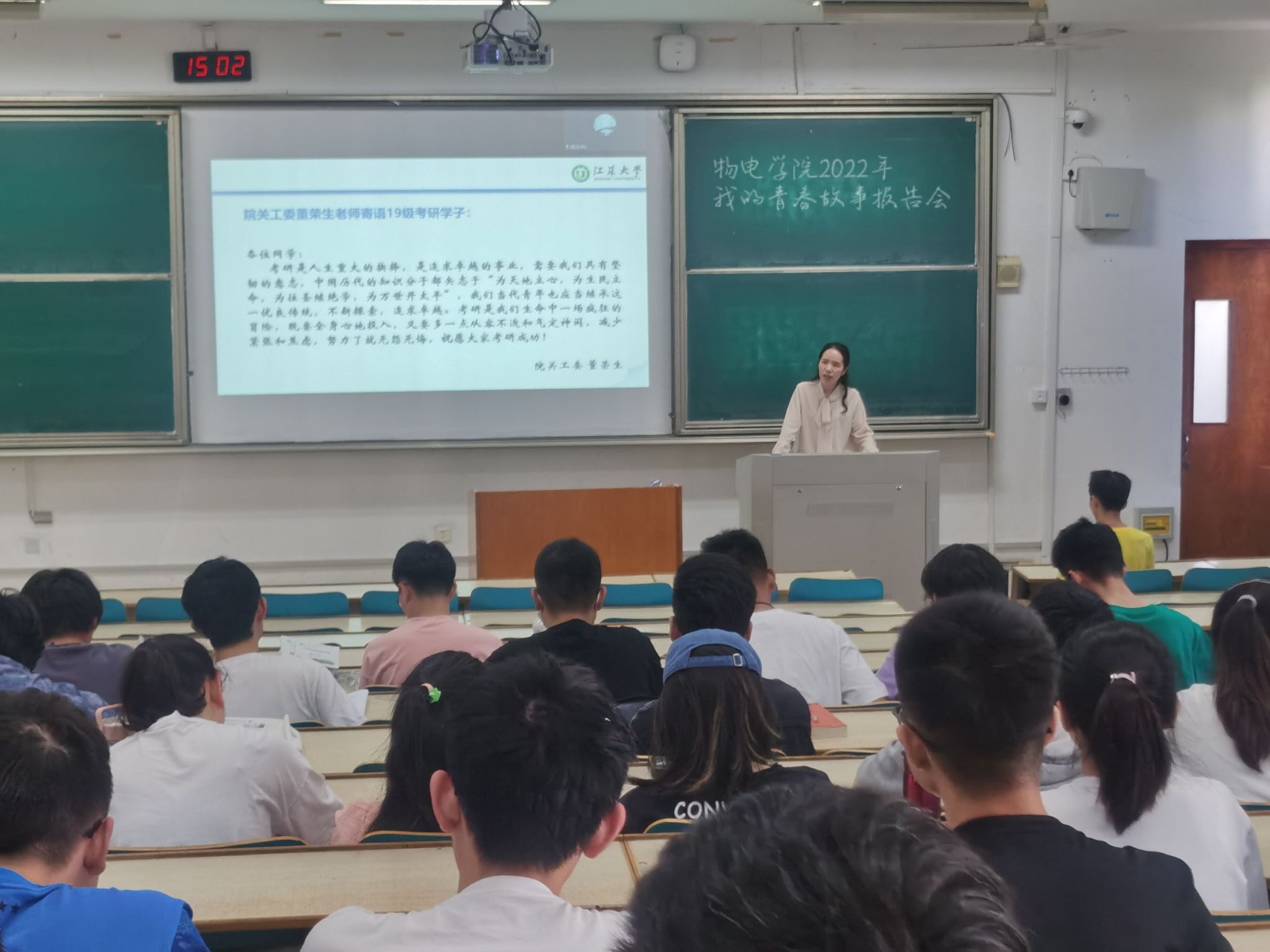 为发挥榜样引领作用,激励考研学子砥砺奋进,5月23日,成人网址 学生会在讲堂群102举办“我的青春故事报告会”考研经验分享活动。成人网址 党委副书记、副院长顾瑜婷,院团委副书记蒋春翔、2018级优秀考研学生代表及全体大三学生参与此次活动。