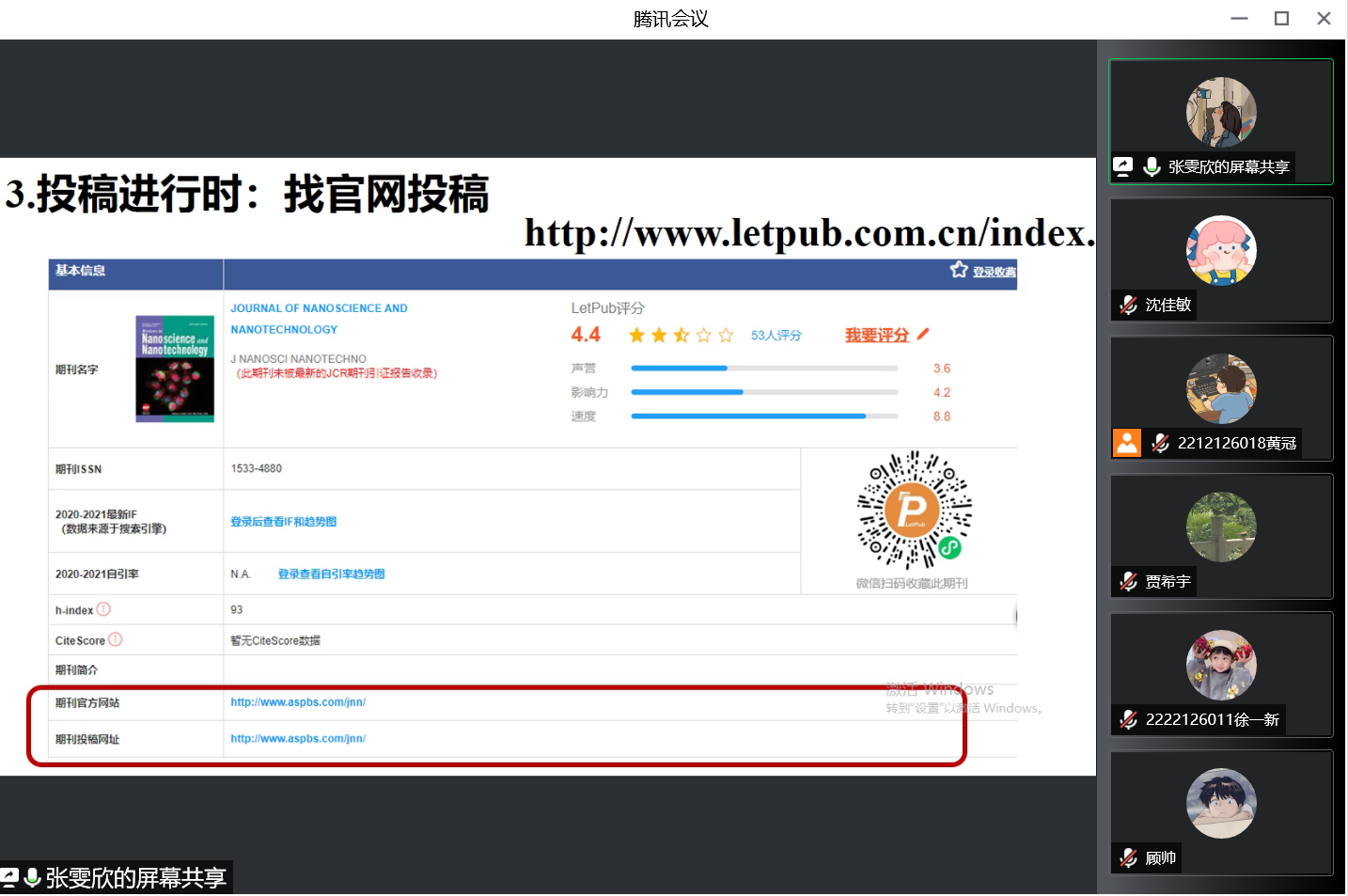 5月24日,为促进优秀科研成果交流,创造研究生学术交流机会,成人网址 研究生会举办了线上SCI投稿学习交流会。此次交流会邀请了优秀研究生代表薛双双、张雯欣同学,由院研会学术部主持。