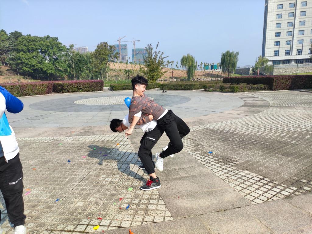 首先,运动会裁判张之珣同学对到场的同学进行签到记录并向他们详细介绍了活动中的游戏规则和计分标准。接着,在张之珣的组织下,同学们自行分组,开展了拔河、集体跳绳、袋鼠跳接力、五人六足、双人背夹气球和你划我猜等项目。运动会中,同学们积极参与,气氛轻松愉快,拉近了彼此之间的距离,增强了团队协作能力。最后,张之珣根据各组得分公布了此次运动会的获奖情况。