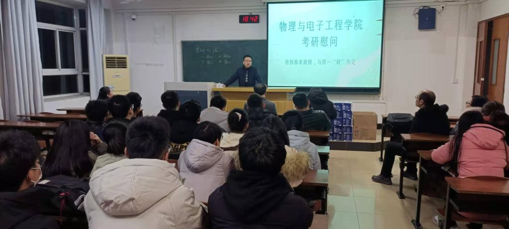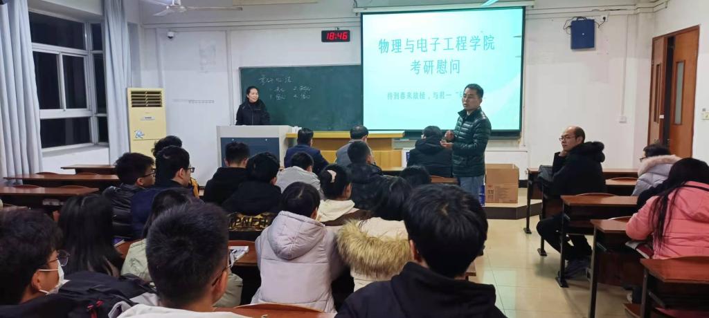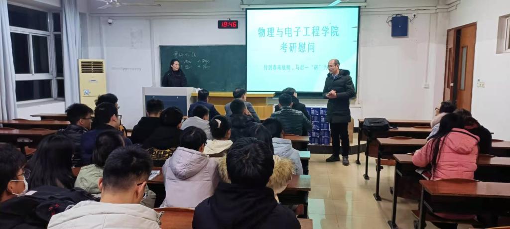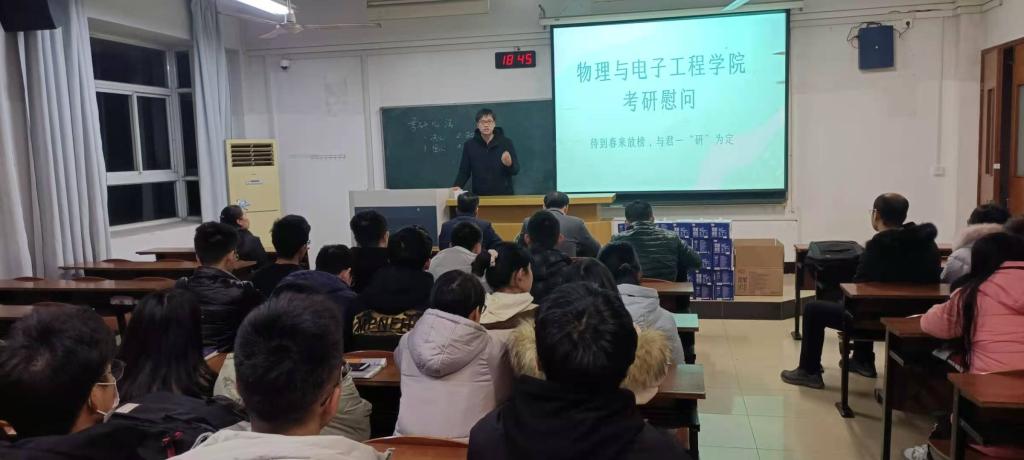 首先,潘书记送给冲刺阶段的考研学子“考研心法”,即决心、耐心、恒心和信心,他勉励同学们在最后的20多天内坚定决心、保持耐心、坚守恒心、鼓足信心。而后,陈院长提醒同学们在关键时期更要有一颗“平常心”和“细心”,他嘱咐同学们要找到排解压力的方法,以及注意身体健康,以更好的身心状态迎接考研。孙院长通过实际案例,鼓励同学们要咬紧牙关坚持,突破瓶颈后迎来的必将是胜利。物理系的三位老师也分别从考试过程中的注意点、考试前后的心理调适等方面向同学们提醒并打气。