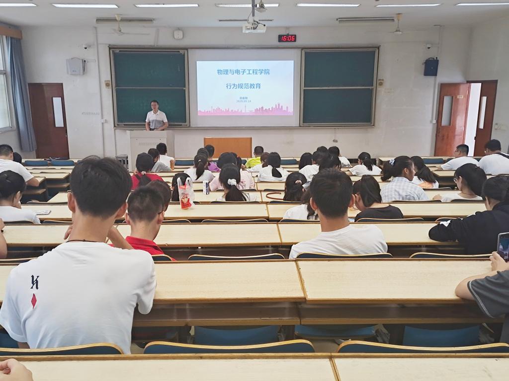 蒋老师首先带领新生学习了《普通高等学校管理规定》、《高等学校学生行为准则》等文件,并详细地向同学们解读了成人网址 本科生奖惩管理规定、日常管理规定及宿舍管理规定。过程中,蒋老师以实际案例警示同学们一定要认真学习并遵守校规校纪,培养自我学习、自我服务、自我教育,自我管理的能力,成为有理想、有道德、有文化、有纪律的合格物电新人。