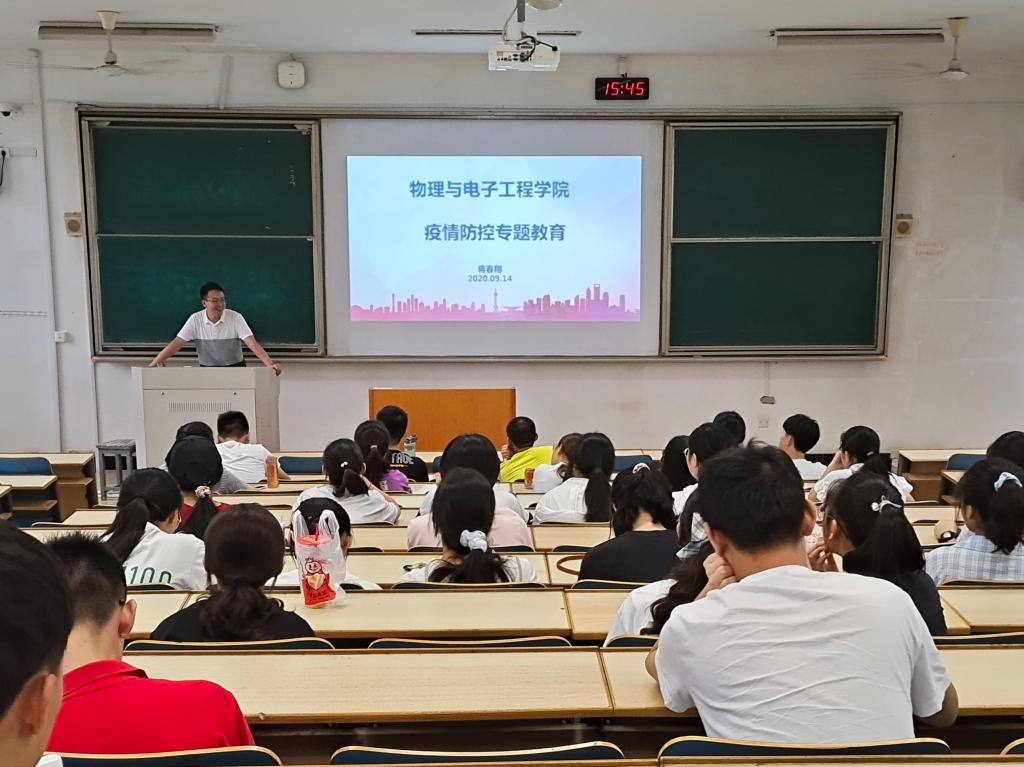 914日下午,成人网址 在讲堂群201举行2020级新生疫情防控专题教育,由20级新生辅导员蒋春翔主讲,全体2020级新生参加了本次活动。