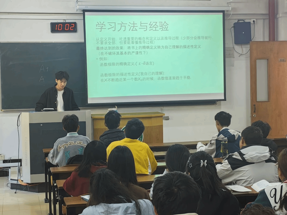 课堂主要围绕高等数学函数极限的相关知识展开,分享了学习技巧和解题思路,讲解了关于学习记忆数学定理的方法。李明辉将数学知识与实际例题结合,通过自己丰富学习经验,让同学们迅速沉浸其中。同学们认真听讲,积极思考,各抒己见。最后,不少同学表示,这样的数学课让他们发现了数学的魅力,不再觉得数学枯燥难懂,希望以后能有更多这样的学习体验。