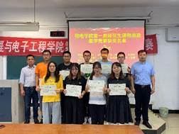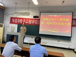73日下午2点,成人网址 第一届师范生思政讲课比赛颁奖暨第一届师范生技能大赛开幕在三山楼104教室举行。活动由物理系系主任曹大威主持,邀请成人网址 书记潘金彪和执行副院长陈元平教授给选手颁奖。物理系副主任俞笑竹,大学物理教学部副主任张培培、冯旭,实验中心副主任施丽娟以及部分技能训练指导老师参加了颁奖活动。