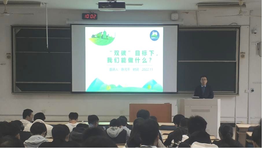 On November 19, School of Physics and Electronic Engineering held "What can we do under the 'double carbon' target?" in Lecture Hall Group 202. Wukesong Lecture Hall. The lecture was given by Dean Chen Yuanping, and the undergraduate students of Physics (Normal) in the 21st and 22nd grades attended the event.