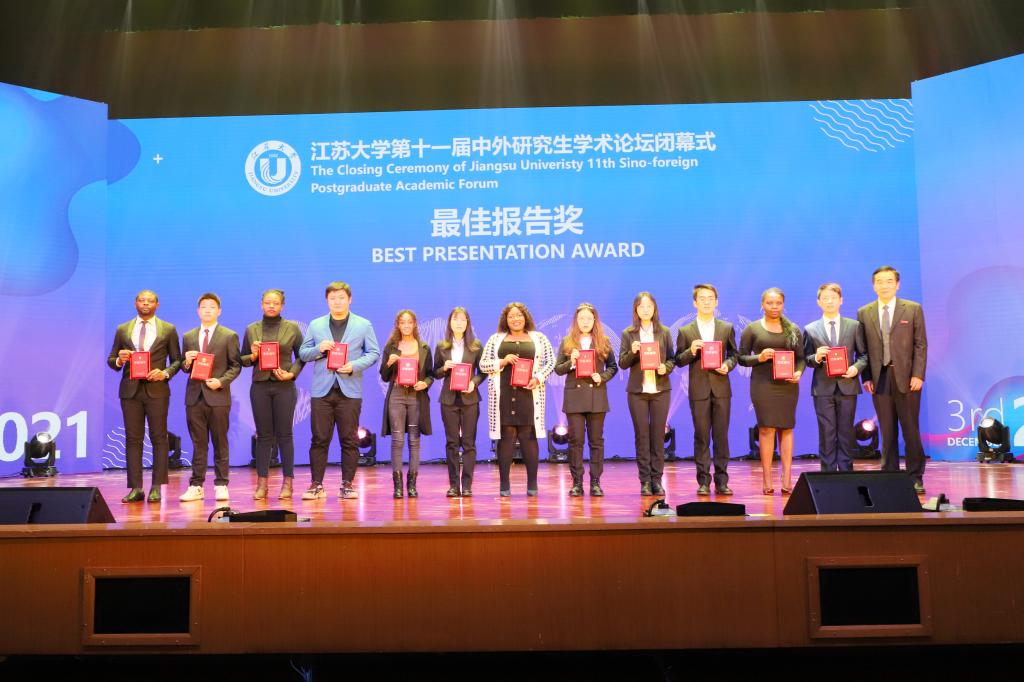 On December 3, the closing ceremony of the 11th Sino Forum for Chinese and Foreign Postgraduates of Jiangsu University was held in the small auditorium, which was attended by President Yan Xiaohong, Vice President Full Power, leaders and relevant persons in charge of the Propaganda Department of the Party Committee, Graduate School, Graduate Work Department, Youth League Committee, School of Overseas Education and all postgraduate training units, and representatives of online and offline Chinese and foreign postgraduates, totaling more than 400 people.