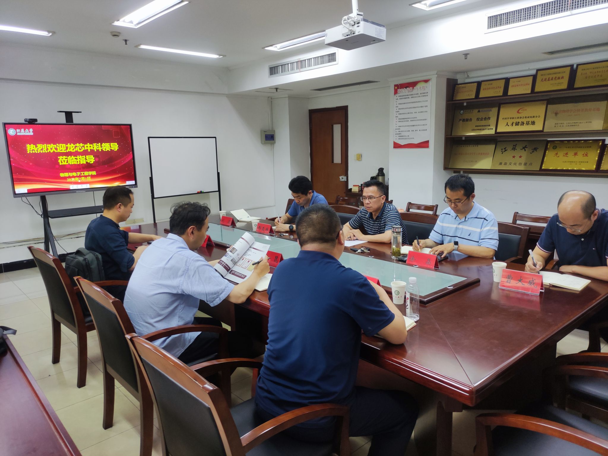 On July 1st, a delegation from Longxin Zhongke Technology Co., Ltd., including Assistant President and General Manager of the Southern Headquarters Yang Kun, Education Division Manager Zhang Shuang, and Director of School-Enterprise Cooperation Sun Changsheng, visited the School of Integrated Circuits at Jiangsu University for a research and exchange visit. The meeting was attended by Dean Chen Yuanping, Vice Dean Xu Jing, Administrative Office Director Xing Yalin, Discipline Leader for Integrated Circuits Cao Dawei, and Secretary of the Microelectronics Department Liu Yuan.